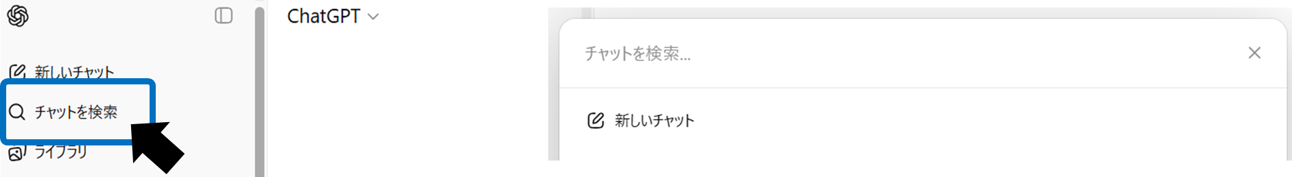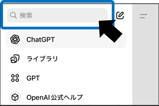 After logging in to ChatGPT, you can find it in the sidebar on the left side of the screen.magnifying glass iconClick. For keyboard operationCtrl+K (Windows)/Cmd+K (Mac)But a search bar will open.
