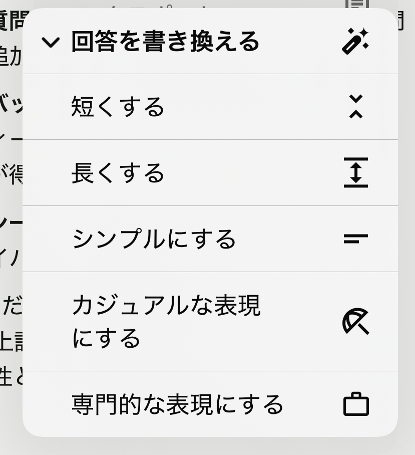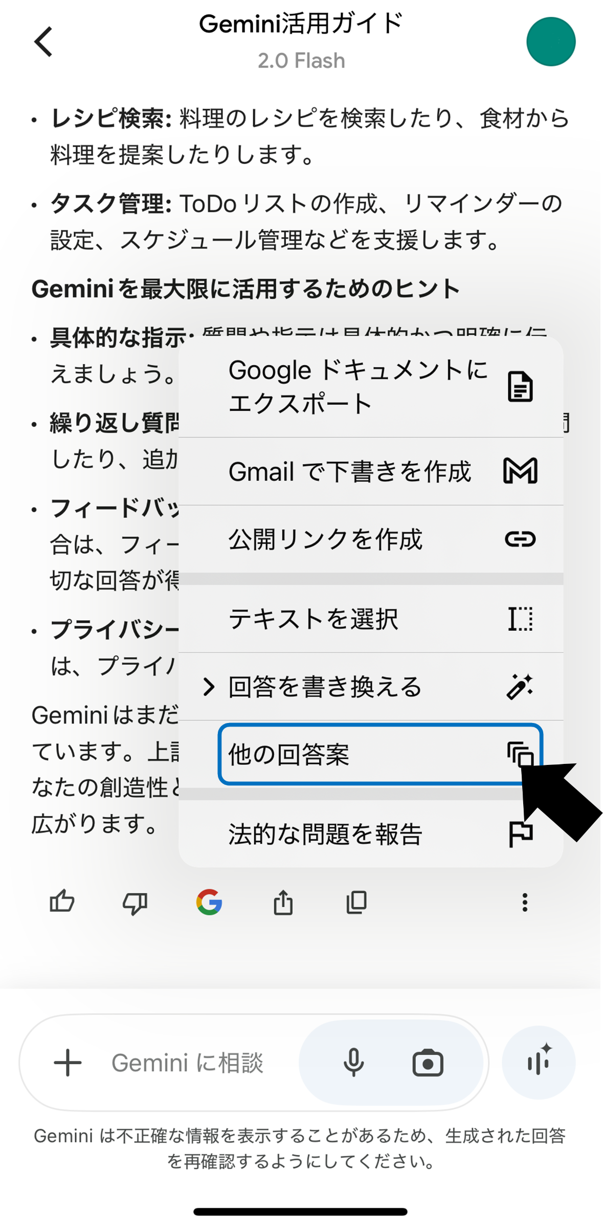 ``Gemini is convenient, but I want to adjust my answers to be more accurate.'' ``I want to change the wording, but asking a question from scratch is a hassle...'' In such cases, the ``regenerate'' and ``rewrite'' functions provided by Gemini will come in handy.